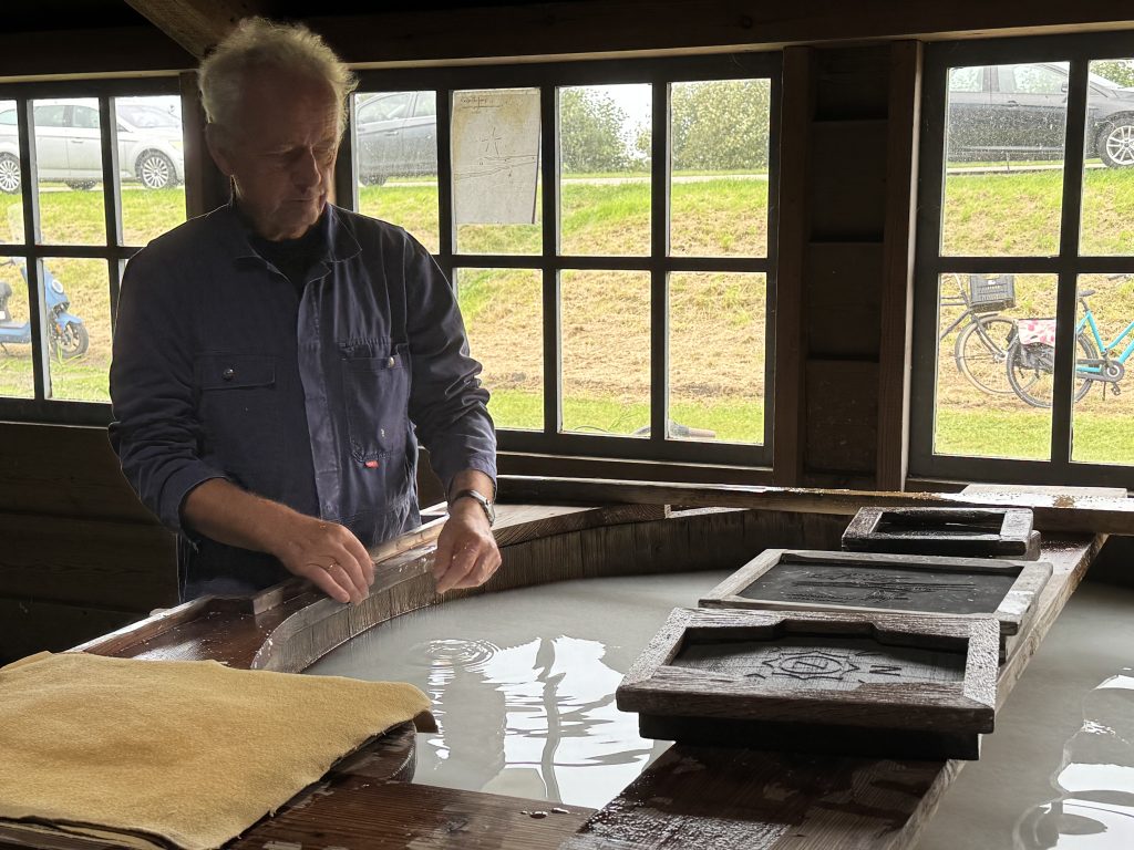 Let op: De foto’s bij dit verhaal laten papiermolen De Schoolmeester zien waarbij molenaar Arie Butterman het proces van papiermaken laat zien. Ze geven nog geen beeld van de voorstelling.