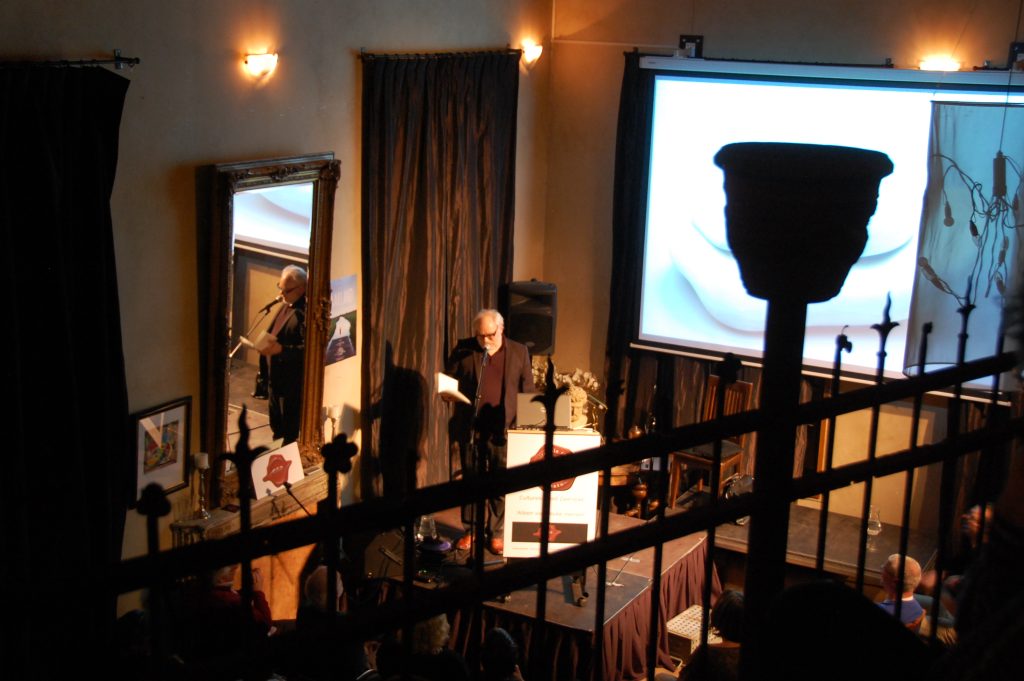 Ons teamlid Patrick van Hees trad op met zijn boek ‘De Geluksprofessor’. We hadden hem niet alleen gevraagd vanwege zijn interessante werk, maar ook om financieel wat lucht te creëren, want zonder subsidie en met een lage entreeprijs was dat nodig. Alex Ploeg, inmiddels een bekend cabaretier en regelmatig op tv, verzorgde ook een optreden. Dankzij de Culturele Raad heeft hij een mooie stap gezet, zeggen wij met een knipoog.